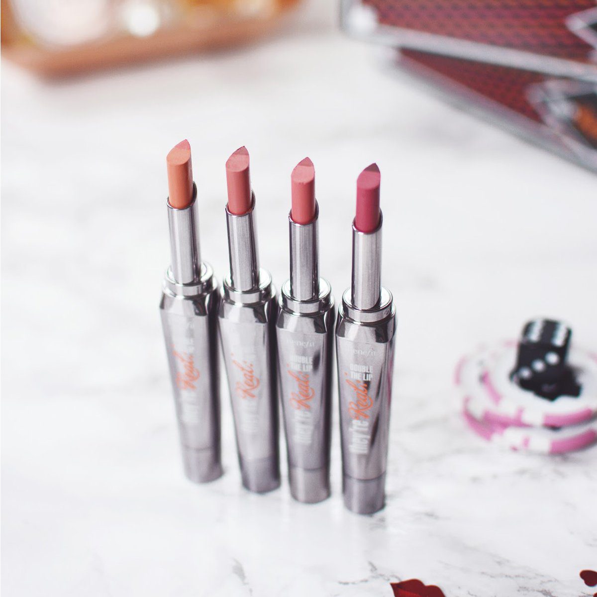 Discover the secret to fuller-looking, perfectly defined lips with Benefit’s They’re Real! Double The Lip Lipstick & Liner in One. This innovative product combines a lipstick and a lip liner in a single, convenient bullet, designed to give you a precise application and a vibrant, long-lasting color. The custom teardrop tip effortlessly outlines and fills your lips, creating a visibly fuller pout with a satin finish.