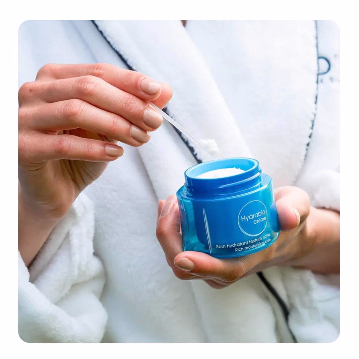 Bioderma Hydrabio Cream is a rich moisturizing cream specifically formulated to provide intense and lasting hydration for very dry and sensitive skin types. Its patented Aquagenium™ complex stimulates the skin’s natural hydration capabilities and water circulation, promoting a softer, more radiant complexion. This cream helps to smooth skin texture and restore comfort, reducing feelings of tightness and discomfort caused by dehydration. Its non-comedogenic formula ensures skin remains balanced without clogging pores, making it an excellent daily moisturizer for those seeking deep nourishment and improved skin suppleness.