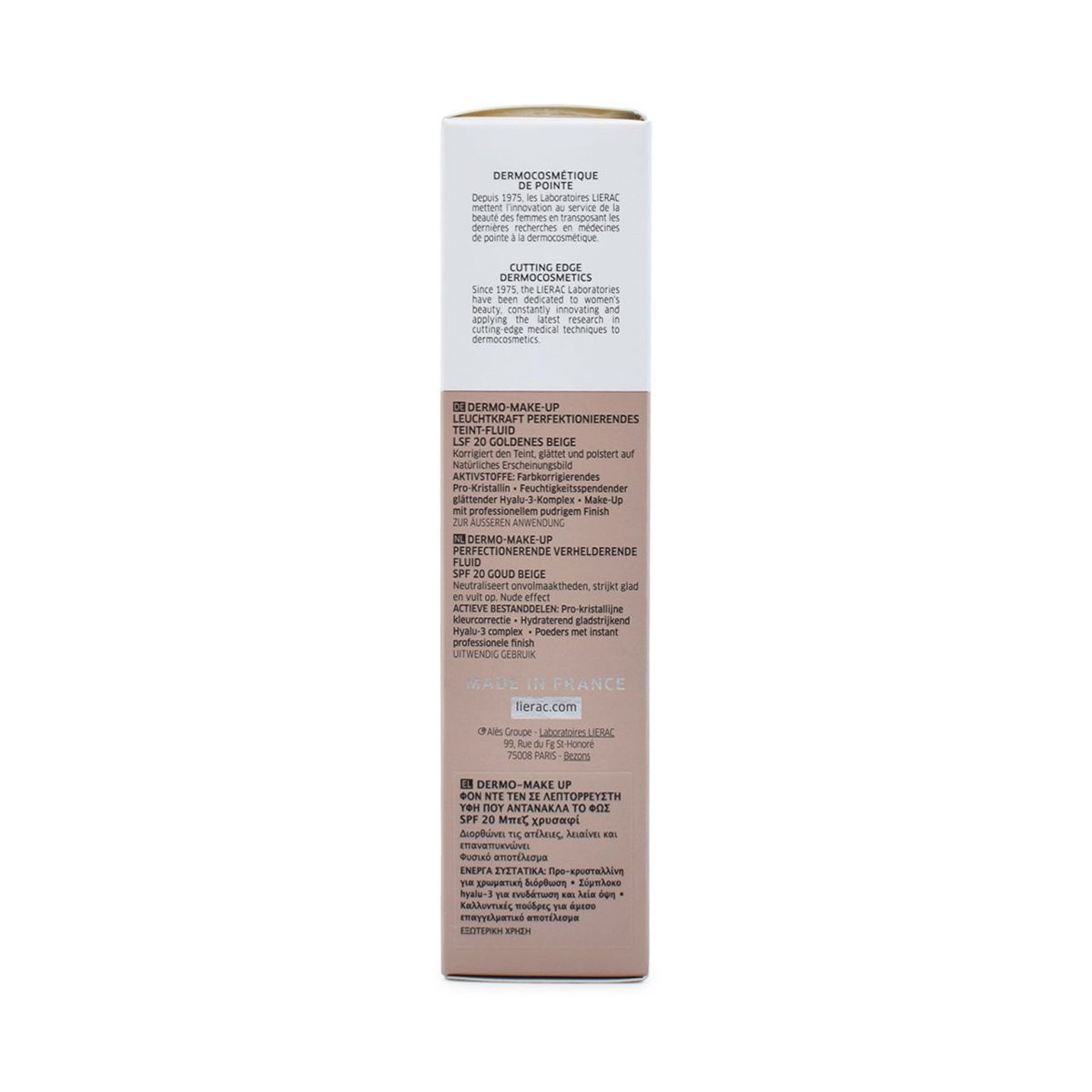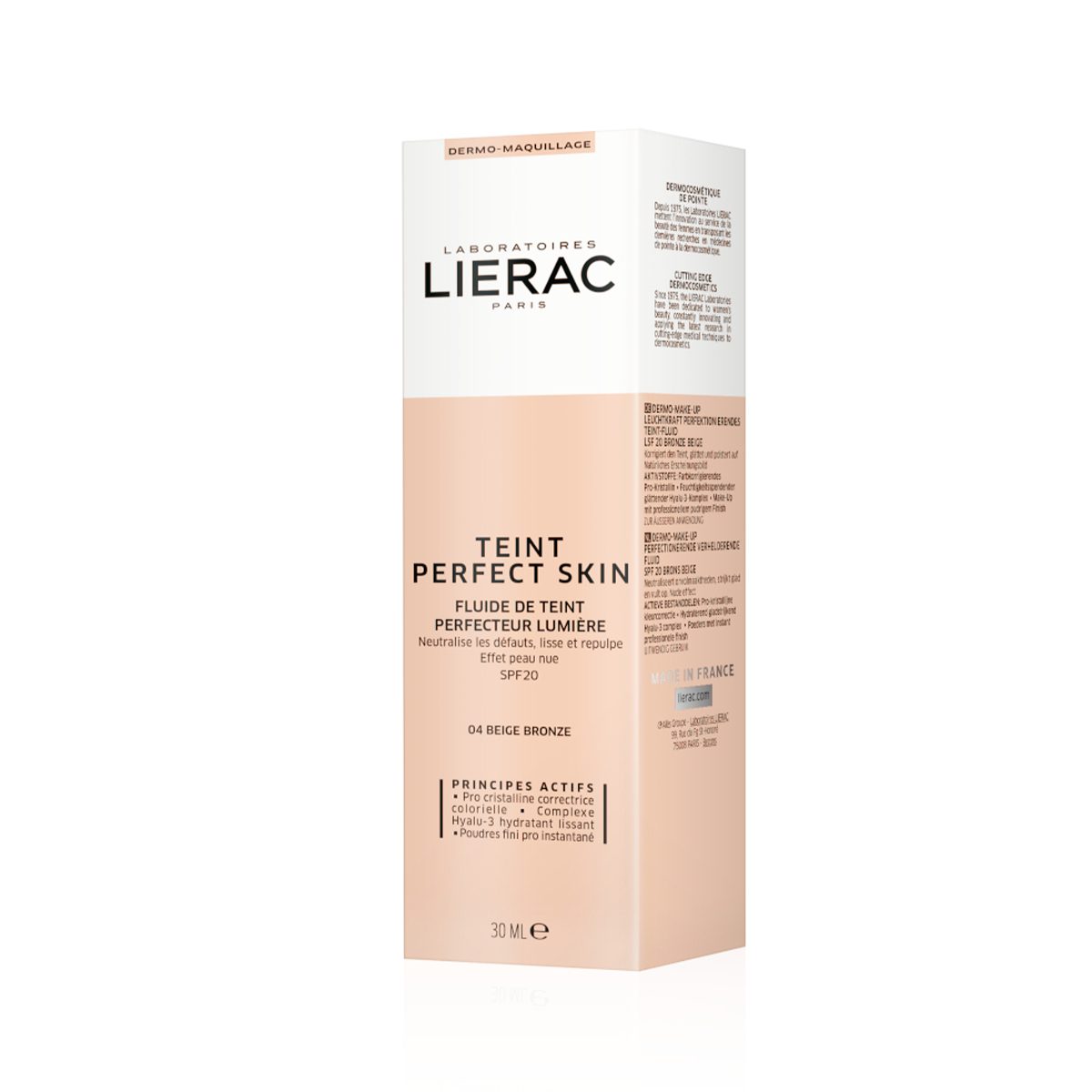Lierac Teint Perfect Skin Perfecting Illuminating Fluid SPF 20 is a lightweight foundation designed to perfect and illuminate the complexion. Formulated with a blend of active ingredients, it works to even out skin tone, smooth the skin’s texture, and blur imperfections for a naturally radiant finish. The fluid provides comfortable wear throughout the day, while also offering SPF 20 protection against sun damage. This foundation is suitable for all skin types, leaving the skin looking healthy and revitalized.