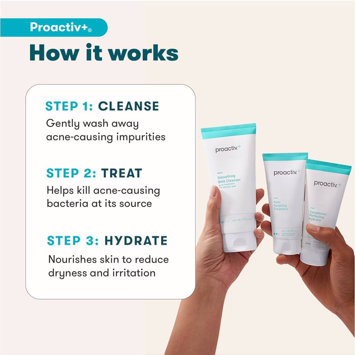 Discover the Proactiv+ 3-Step Acne Treatment System, a dermatologist-developed routine designed to combat acne and promote a clearer complexion. This comprehensive system works synergistically to exfoliate, treat, and hydrate your skin, addressing the root causes of breakouts. Formulated to be gentle yet effective, it helps to reduce inflammation, minimize pores, and improve overall skin texture, making it suitable for those struggling with persistent acne.