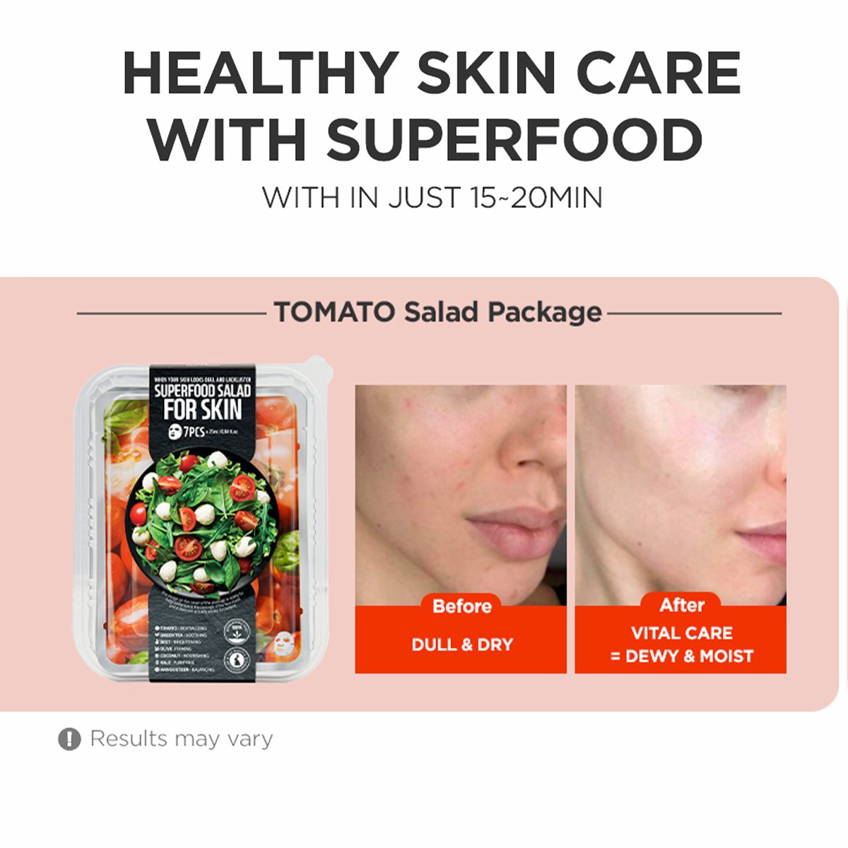 الهدف الرئيسي من مجموعة TOMATO Salad هو تنشيط وتفتيح البشرة الباهتة، باستخدام الليكوبين ومضادات الأكسدة ومستخلصات السوبرفود لتوحيد اللون وترطيب البشرة وحمايتها للحصول على إشراقة متوهجة.