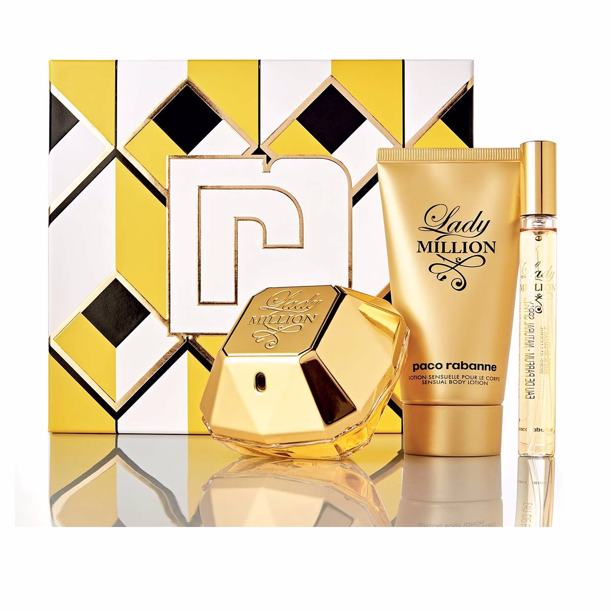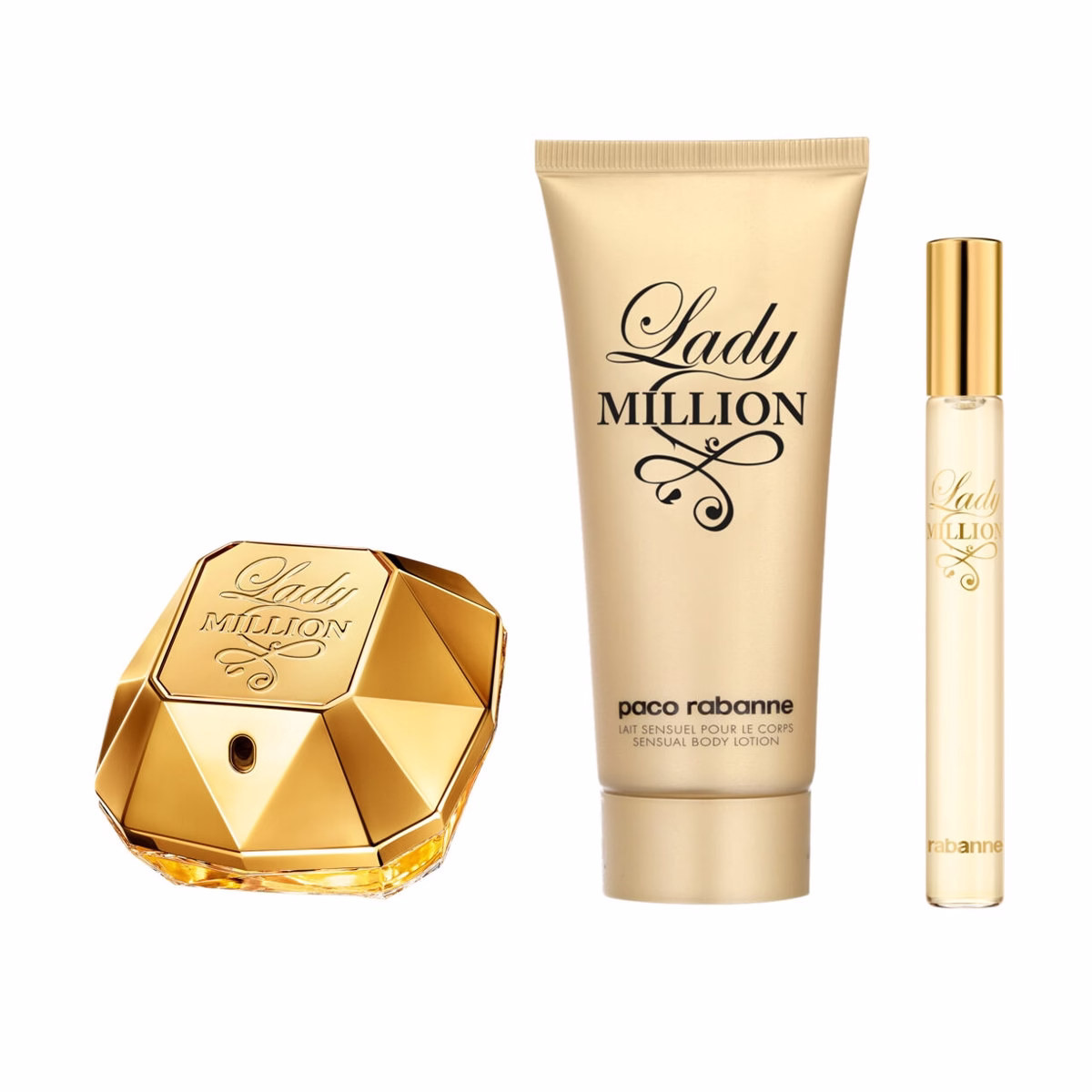 طقم هدايا فاخر من باكو رابان ليدي مليون، يضم عطر أو دو بارفان 80 مل، وعطر أو دو بارفان 10 مل، ولوشن للجسم 100 مل، مثالي للنساء.