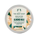 دللي بشرتك بزبدة الجسم بحليب اللوز من The Body Shop، مرطب غني وكريمي مصمم لتوفير ترطيب مكثف للبشرة الجافة والحساسة. تذوب زبدة الجسم الفاخرة هذه في البشرة، لتتركها ناعمة وملساء ومغذّاة، دون أي ملمس دهني. بتركيبة غنية بحليب اللوز من إسبانيا المستخرج ضمن برنامج التجارة العادلة للمجتمعات، تساعد هذه الزبدة على تهدئة وتلطيف البشرة الرقيقة، مما يجعلها خيارًا مثاليًا للتدليل اليومي.\n\nتوفر هذه التركيبة المختبرة من قبل أطباء الجلد ترطيبًا يدوم 96 ساعة، مما يساعد على استعادة الحاجز الطبيعي للبشرة وحمايتها من العوامل البيئية الضارة. تمنحك رائحتها الرقيقة والمريحة تجربة حسية لطيفة، معززةً روتين العناية بجسمك.\n\nالميزات والخصائص\n\n• توفر ترطيبًا مكثفًا يدوم 96 ساعة\n• تهدئ وتلطف البشرة الجافة والحساسة\n• تترك البشرة ناعمة وملساء ومغذّاة\n• غنية بحليب اللوز من التجارة العادلة للمجتمعات